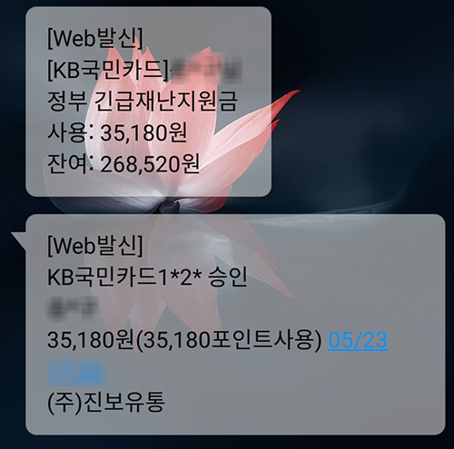 카드를 긁으면서도 혹시나 싶었는데 제대로 정부 긴급재난지원금에서 빠져나가더군요.